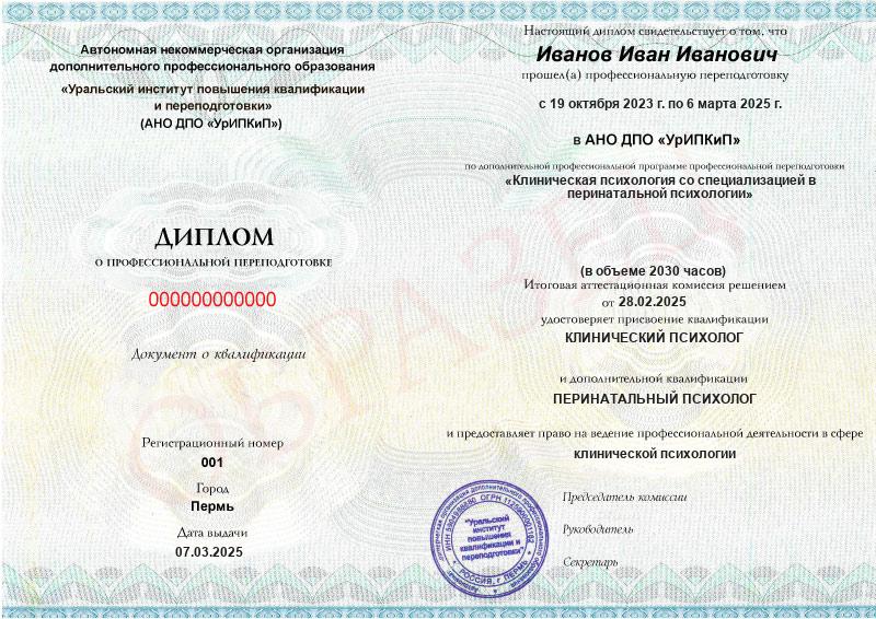 2 квалификации — «Клинический психолог» и «Перинатальный психолог».